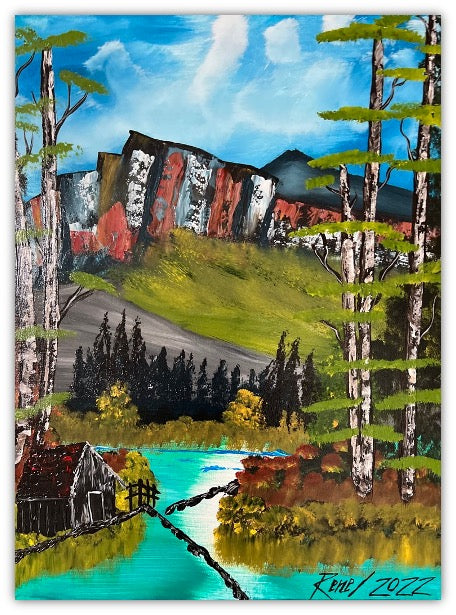 A collection of unique interpretive adaptations of paintings inspired by Bob Ross, the popular celebrity artist whose “Joy of Painting” tutorials aired on Public Broadcasting and provided motivation for a generation of new aspiring artists. Bob Ross facilitated the pursuit of dreams for new and emerging artists. His relaxed teaching style allowed mistakes and encouraged improvisation in the painting process.