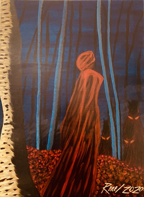 A collection of paintings that focus on Halloween Themed and other frightening and terrifying subject-matter These images depict or set the mood for feelings of hair-raising, spine-chilling and blood-curdling settings ranging from light and whimsical fantasy to darker apprehension and foreboding.