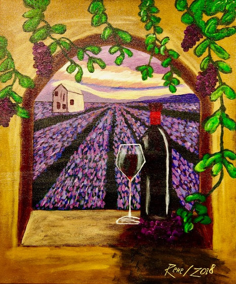 - Arch Overlooking Lavender Fields With Grapes & Wine