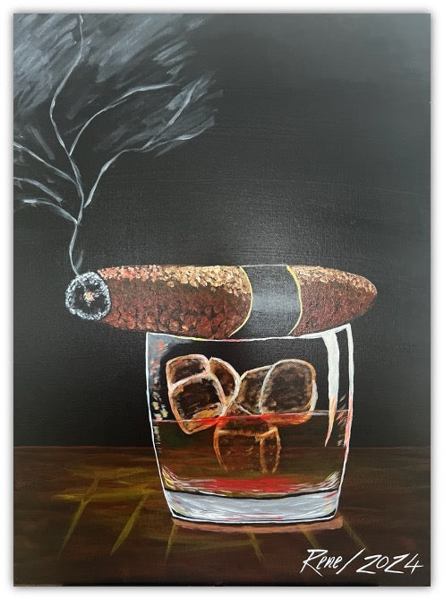 A collection of paintings that gravitate towards a time of day where a relaxing beverage facilitates a quiet reflection on the events of the day. This can be a solitary or shared contemplation and deliberation on past, current or future events impacting our lives on a personal or grander scale affecting those we love and care about, as well as the state of affairs of our town/city, our nation or the world.